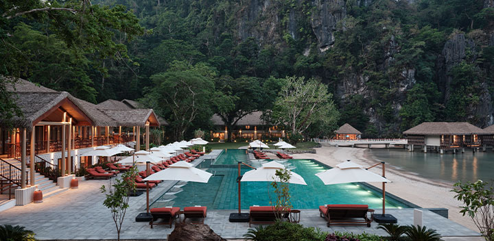 切り立った岩とマングローブに縁取られたラゲンアイランド(Lagen Island)は、島に生きづく自然を最大限に生かして造られました。日の出とともに徐々に光が差し込むリゾートは、朝、鳥の鳴き声で目覚めます。熱帯雨林に包まれ、夜を迎えると、空には星が輝き始めます。ゆっくりとした時間を楽しみたい方々にお勧めのリゾートです。